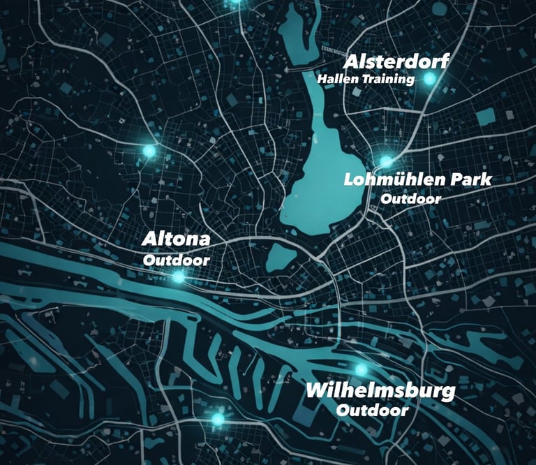 In der Regel trainieren unsere Athleten in ganz Hamburg.